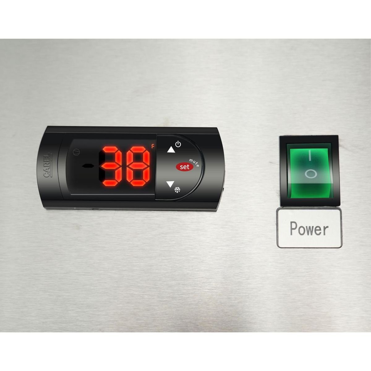 Digital Temperature Control The CAREL Digital temperature controller allows easy adjustment within 33~40℉. The unit defrosts automatically every 6 hours, ensuring your food stays properly chilled. Stay informed with the clear LCD readout, effortlessly keeping track of the unit's temperature for added convenience.