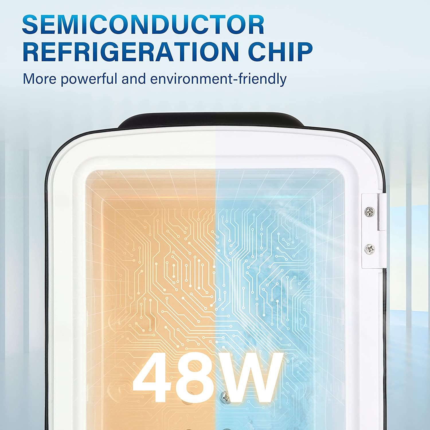 Compact and portable: 4-Liter capacity that can store up to six 12 oz cans. The interior size is 5.5*5.1*8.1 inches. Comes with a removable shelf and convenient carry handle, great for bedroom, offices, dorms, camping and more! Capacity: 4 liters