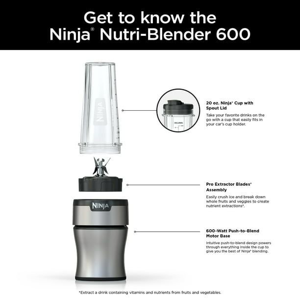 the intuitive 600-watt push-to-blend motor base powers through everything inside the cup to give you the best of ninja blending.