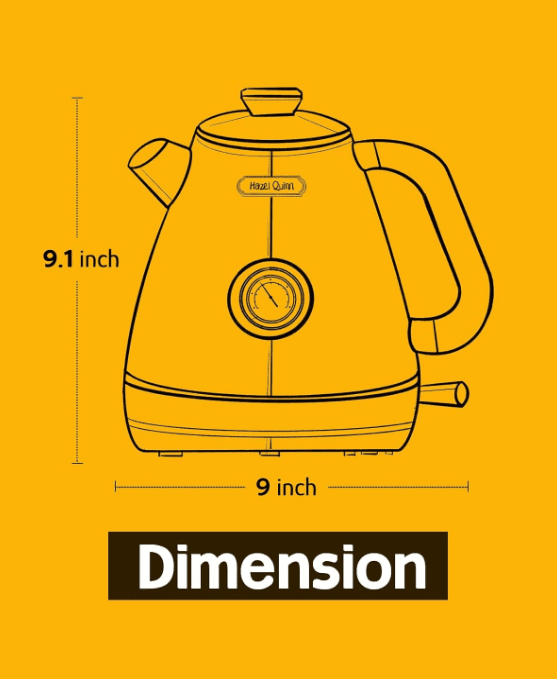 [Fast boiling & Large capacity] -Rated at 120 volts and 1,200 watts, the Hazel Quinn kettle can boil 1.7 liters of water in 4-5 minutes, up to 8 cups. Get ready to get enough drinks for your whole family.