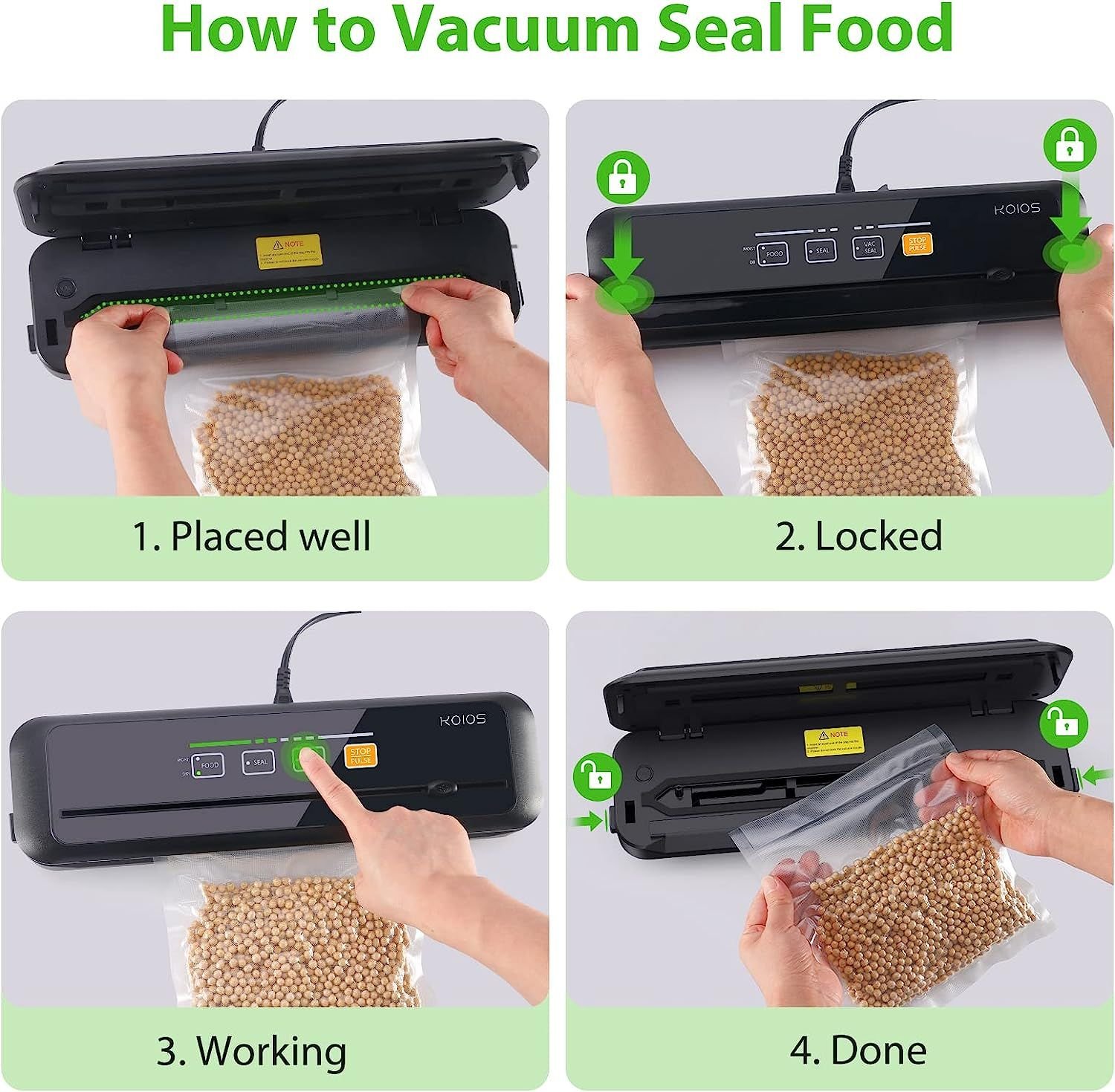 1. Dry & Moist Food Modes: KOIOS vacuum sealing system offers you a quick, easy and inexpensive way to preserve your food. Easy one-touch operation allows you to set the right mode when you’re sealing dry or moist foods.