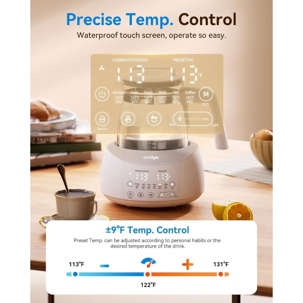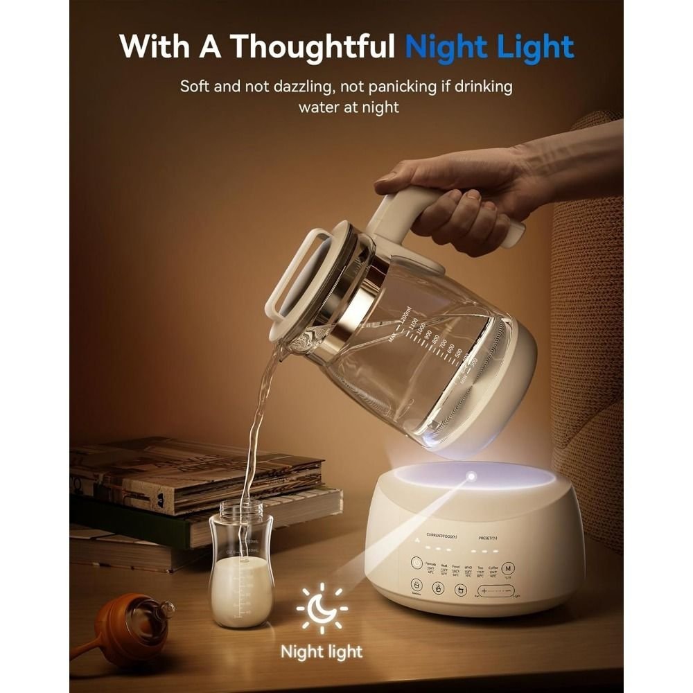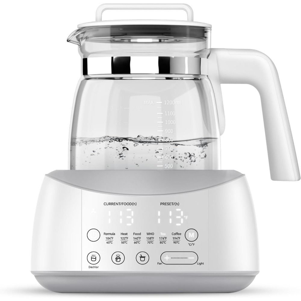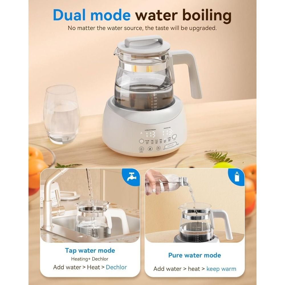 • ��[5MIN DECHLOR AND FOOD STEWING]: Fast Boiling cordless water warmer supports double boiling mode of purified water and tap water. Especially in tap water mode, electric glass kettle boils the tap water for 5 minutes to remove chlorine to provide healthy water quality for your baby and the purest and most healthy water for you. Achieve precise cooking of food, with preset time and timing functions. One pot can be used for multiple purposes, making it more suitable for daily needs.