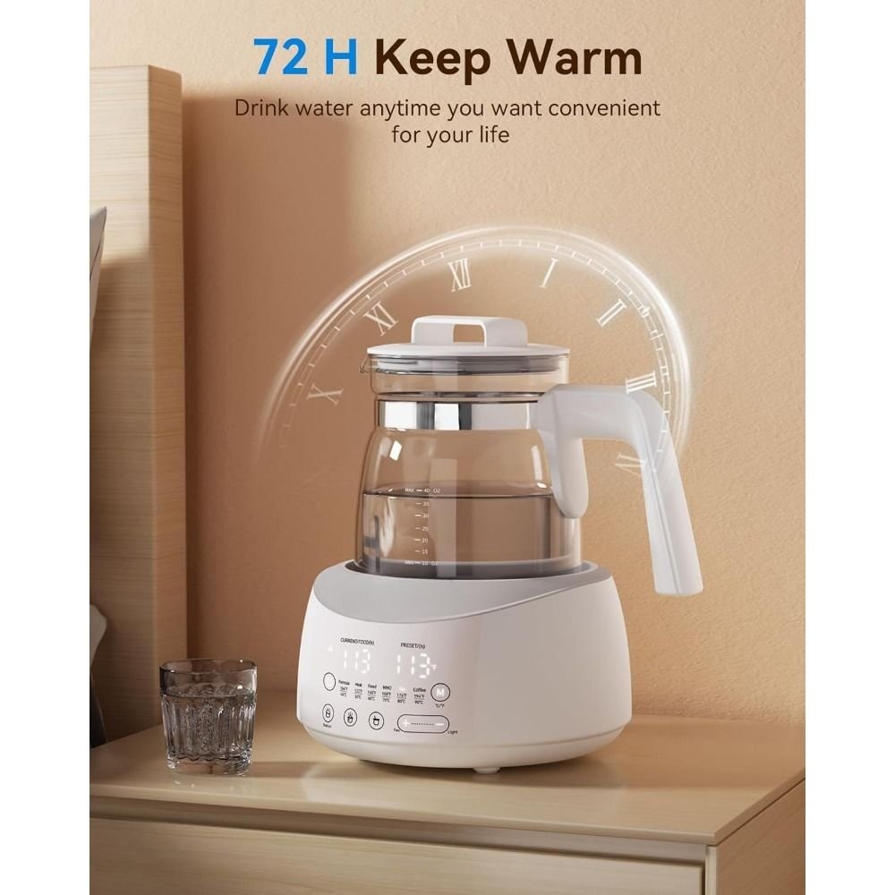 • ��[72H CONSTANT TEMPERATURE]: The temp. on this kettle is just right every time. During stressful workdays and brainstorming sessions, give yourself some health-preserving energy, warming your heart and stomach and rekindling your fighting spirit; Especially the teapot boiler & heater helps moms faster and more timely feeding and soothing little ones at night, giving moms peace of mind.