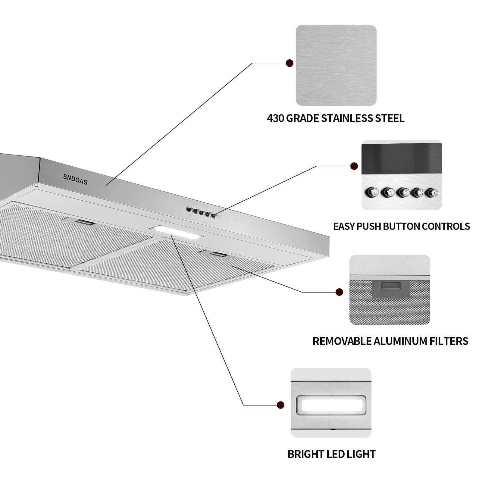 This is a professional Under Cabinet stainless steel range hood. This hood is designed to be both elegant and powerful. This hood is made from 430 grade stainless steel and is a classic. Its durable construction; modern design - a exclusive - guarantee a range hood with a timeless design.